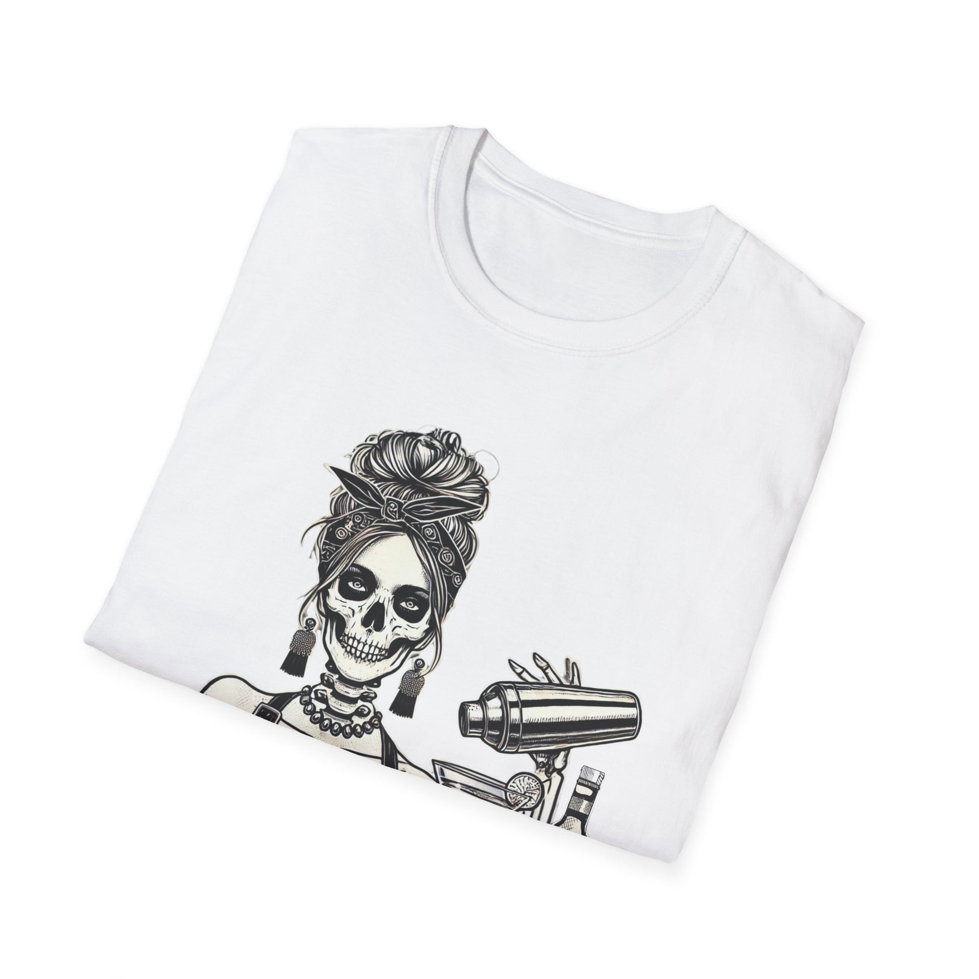 Pour up the sass with this “Bar-10-Duh” Bartender Shirt—the perfect blend of humor, grit, and late-night charm. Featuring a skeleton bartender shaking things up behind the bar, this tee is made for those who live the nightlife, love a good cocktail, and aren’t afraid to get a little dark with their humor.